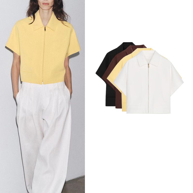 Летняя новинка Женская одежда Повседневная мода На все случаи жизни Топы на молнии Футболка с лацканами Короткий стиль Верхняя одежда 8491053