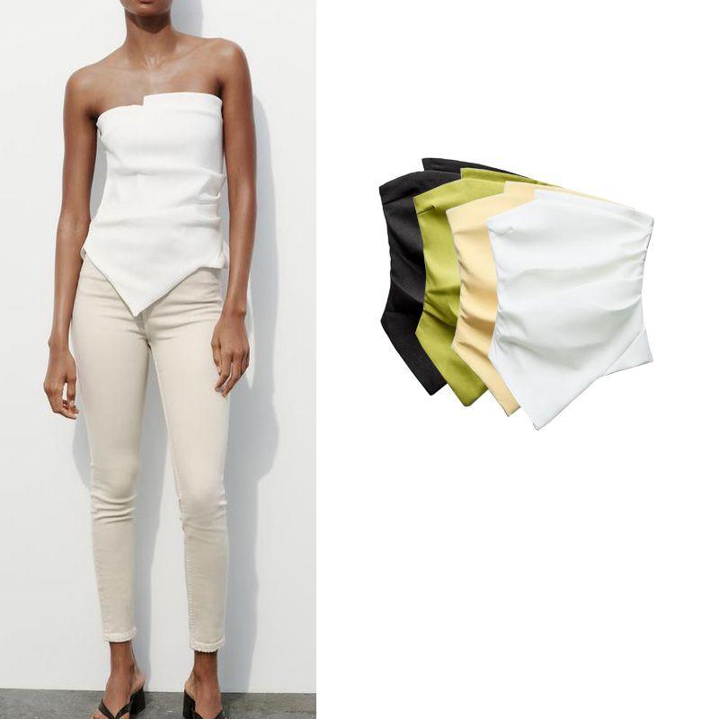 Spring New Women's Clothing Asymmetric off-Shoulder Design Ruched Decoration Tube Top Tops 0085320 0085800