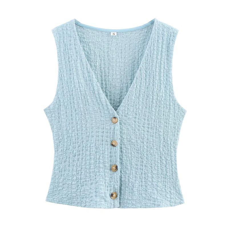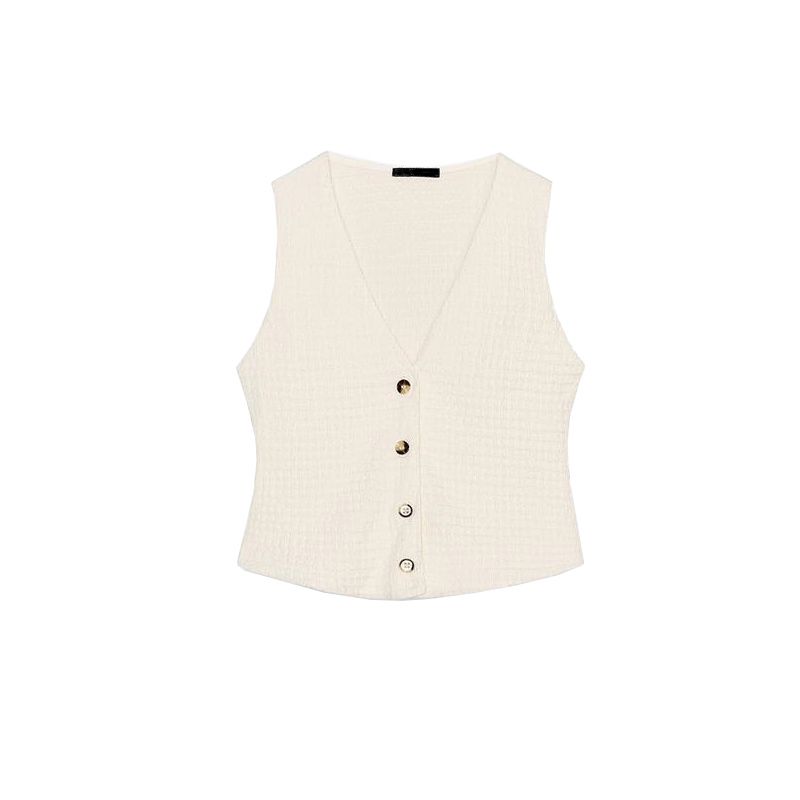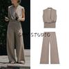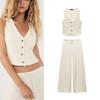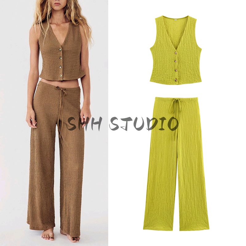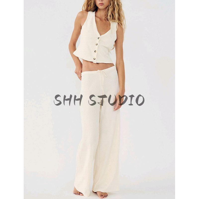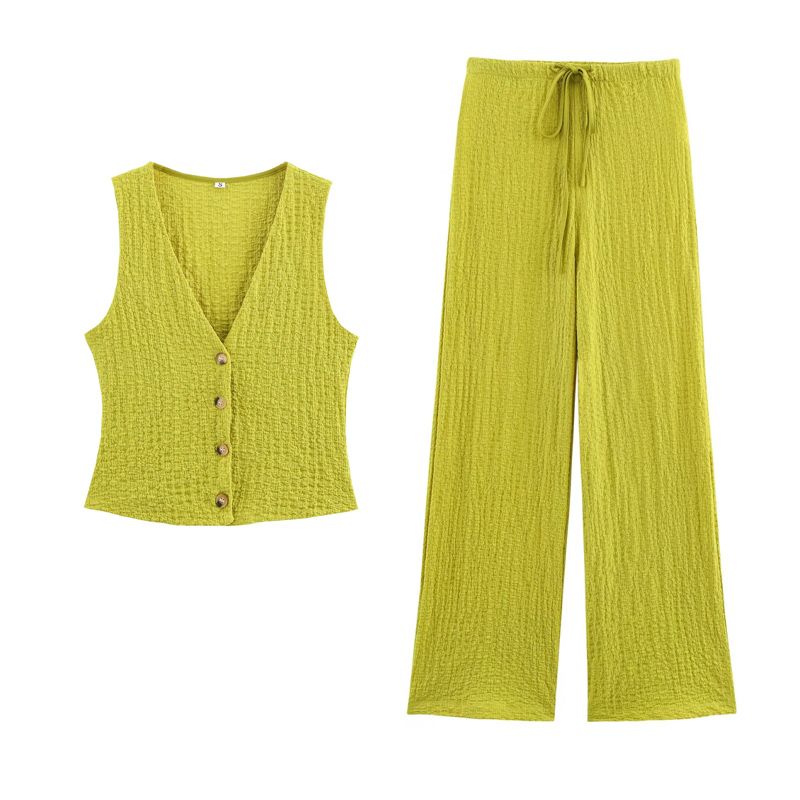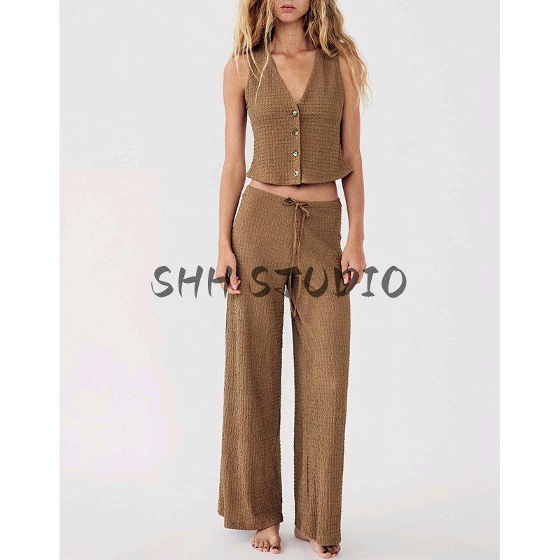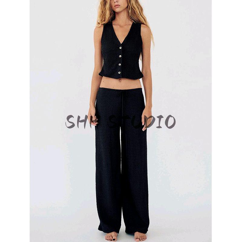 Textured Sleeveless Cardigan Vest Tops 5039277 Straight-leg Loose Comfort and Casual Pants 5039278