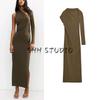 Autumn New Women clothes Holiday Style Asymmetric Collar Silk Satin Texture Long Dress 2157241 8372074