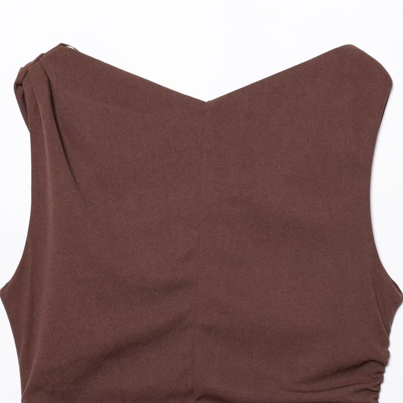Kaslead New Arrival Women's Clothing Fashion Style Fashion Slim-Fitting Simple Pure Color Sleeveless Ruched Dress
