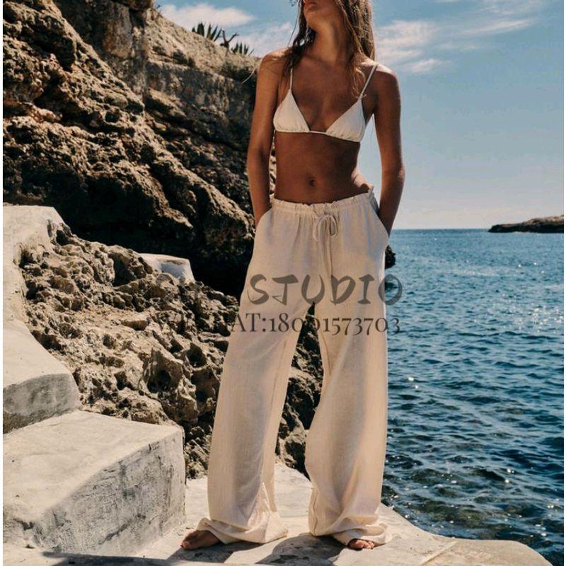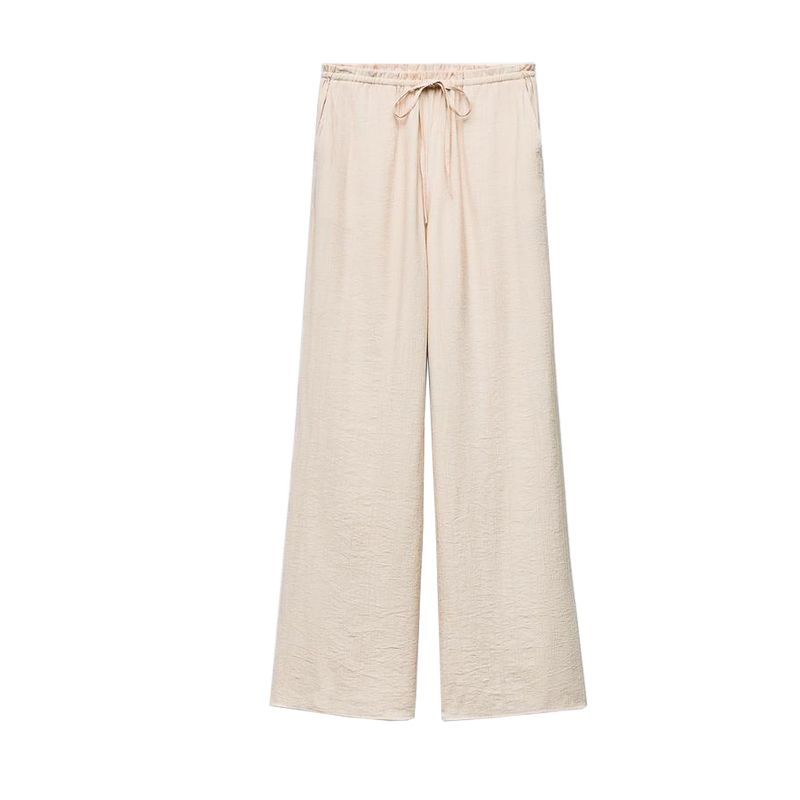 Spring New European and American Commuters' Plaid Easiest for Match Stretch Waist Lace up Casual Textured Pants 4391450