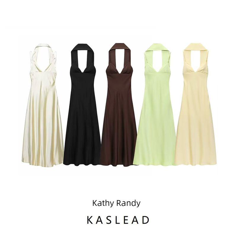 Kaslead New Women clothes Western Style Thin Scarf with Silk Satin Texture Dress 8033331 727