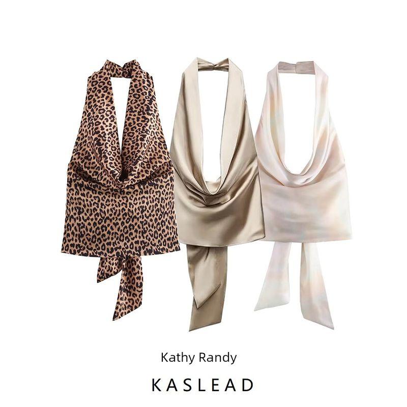 Kaslead New Arrival Women's Clothing Fashion Style Stylish Simple and Versatile Hanging Collar Tops 3067119
