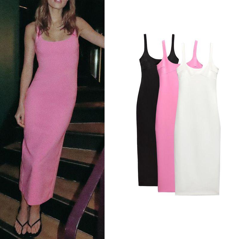 Spring New European and American Sexy Slim fit Vest Skirt Back Slit Sheath Middle Long Version One-Piece Dress 2289777