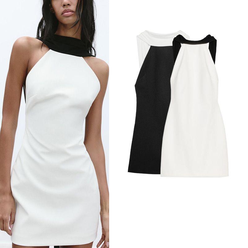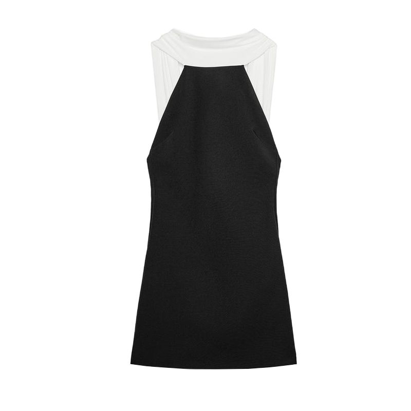 Summer New Women clothes French style Design Contrast Color Patchwork Sleeveless round Neck Short Dress 3067339