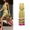 Spring and Summer Women's Clothing Wide Shoulder Strap Twist Design Printed V-neck Silk Satin Texture Midi Skirt Dress 3226275
