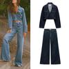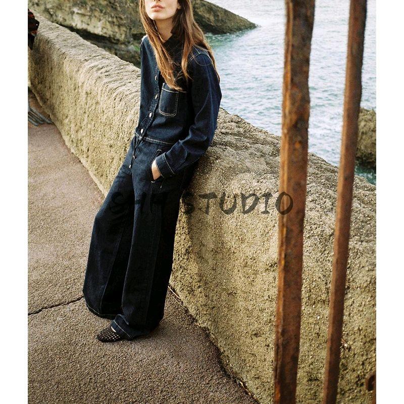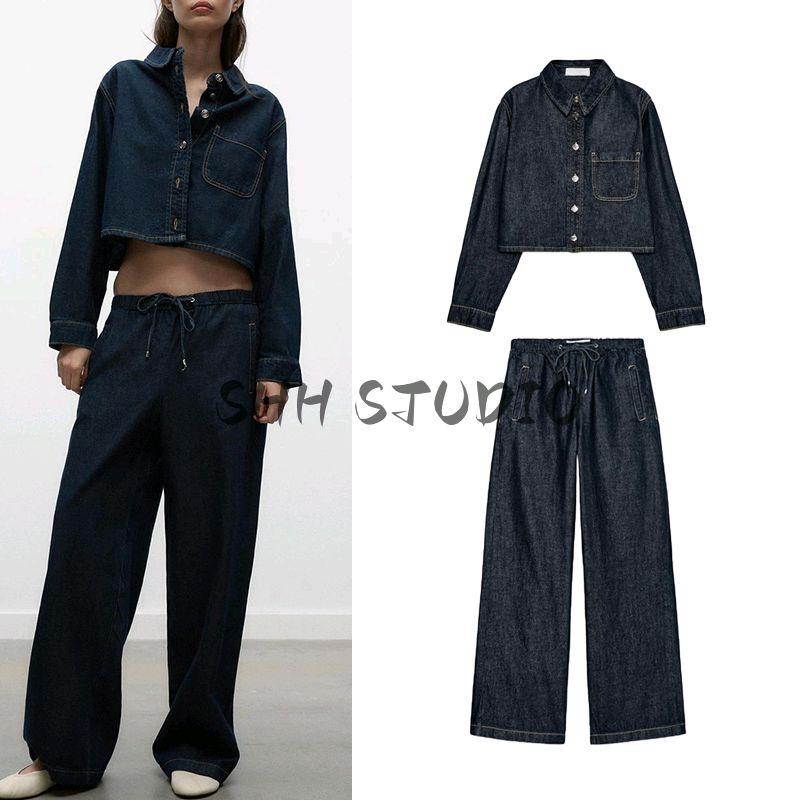 High Waist Wide Leg Jogging Plaid Jeans 1934027 Denim Cotton Long Sleeves Short Shirt 1934029
