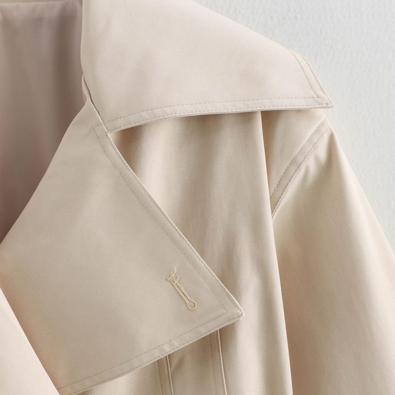 Kaslead New Women clothes Western Style Fashion Simple and Versatile Short Belt Long sleeve Trench coat Jacket