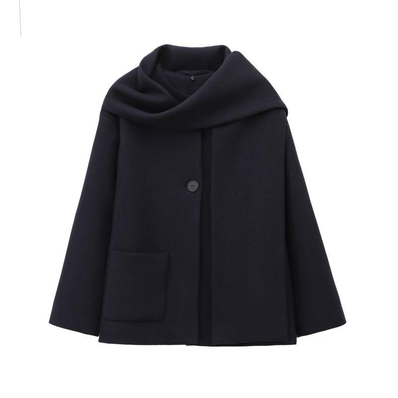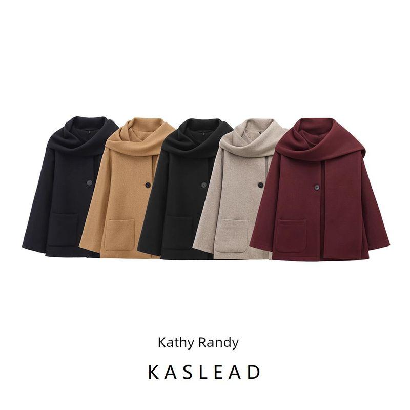 Kaslead Новинка Женский Модный Стиль Смешанный Шарф Круглый Вырез Длинные Рукава Пальто Верхняя Одежда 2095141