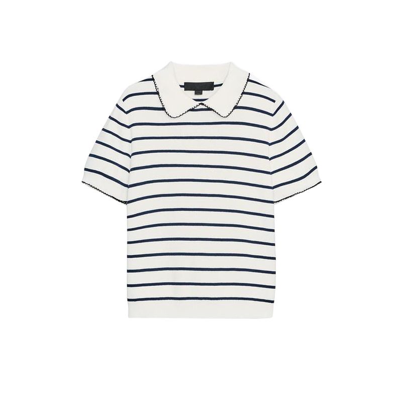 Summer Women's Clothing Preppy Style Color Contrast Patchwork Trim Short Sleeve Lapel Casual Knitting Tops 2142040