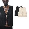 Spring and Summer New Women's Clothing Minimalist Wind Easiest for Match Bows Cotton Blend Embroidered V-neck Sleeveless Tops 0881017