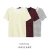 Kaslead New Women clothes Western Style Fashion Simple Solid Color Vertical Stripe Knitted Short sleeve Top