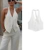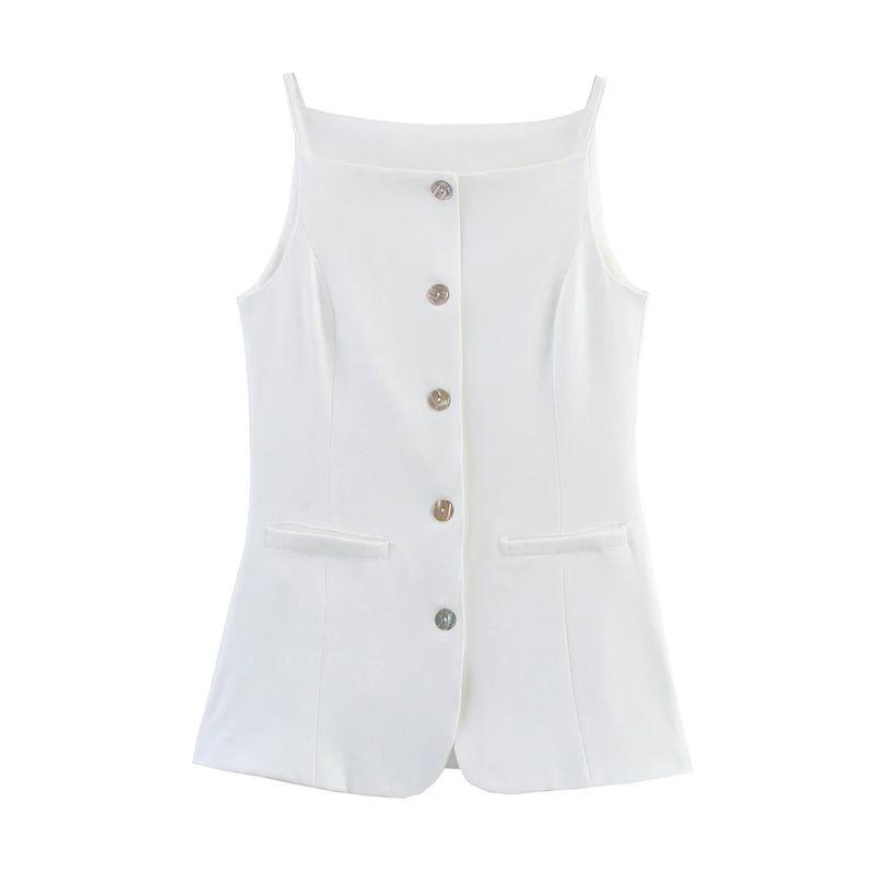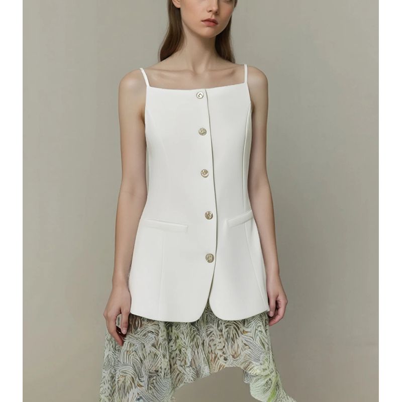 Summer New Product Women's Clothes Commute Style Square Collar Sleeveless Single Breasted White Suspender Mid Length Long Length Vest Jacket