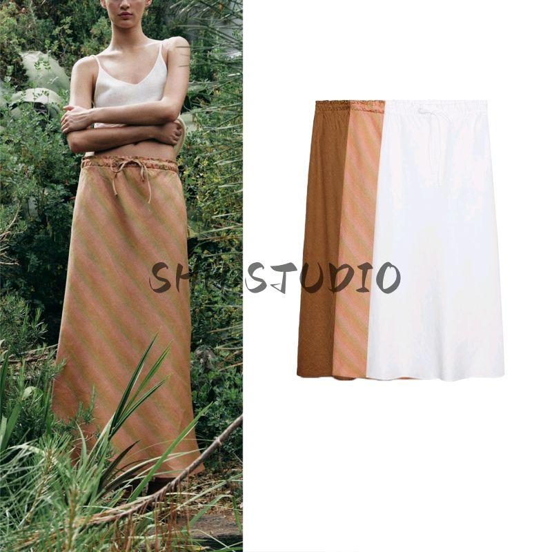 Summer New Product Women's Clothes Simple Lace Trim Linen Blended Mid Waist A- line Hem Midi Dress 4786111