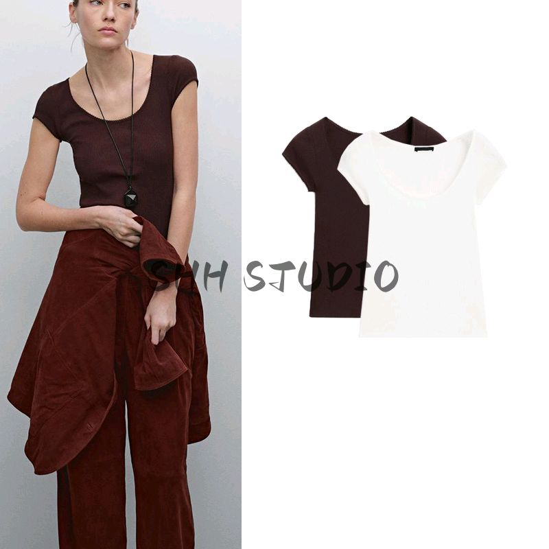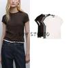 MD Spring/Summer New Arrival Women's Clothing American Casual Minimalist Easiest for Match Lace Trim round Neck Short Sleeve T-shirt Top 6844576