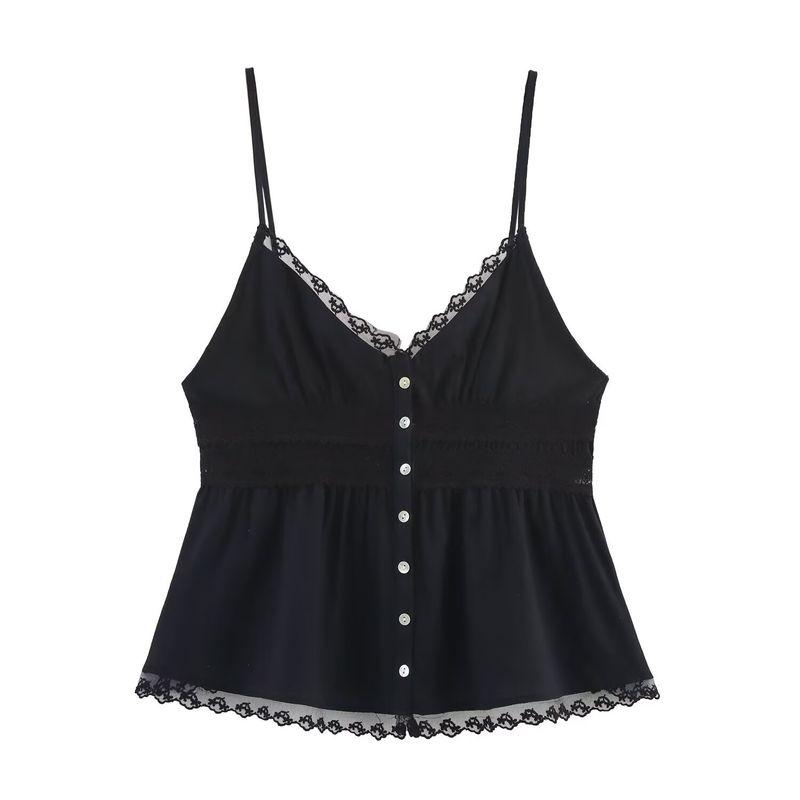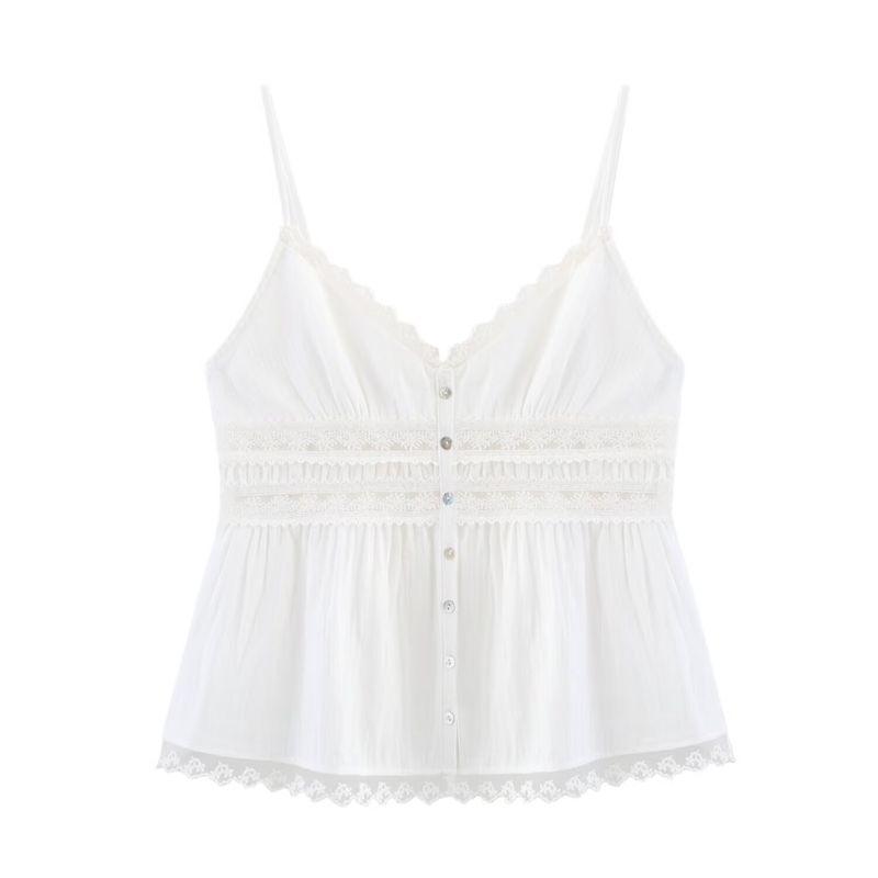 Kaslead New Arrival Women's Clothing Fashion Style Stylish Simple and Versatile Embroider Lace Tops 0881018