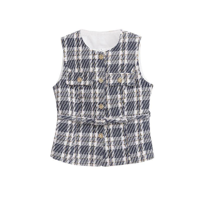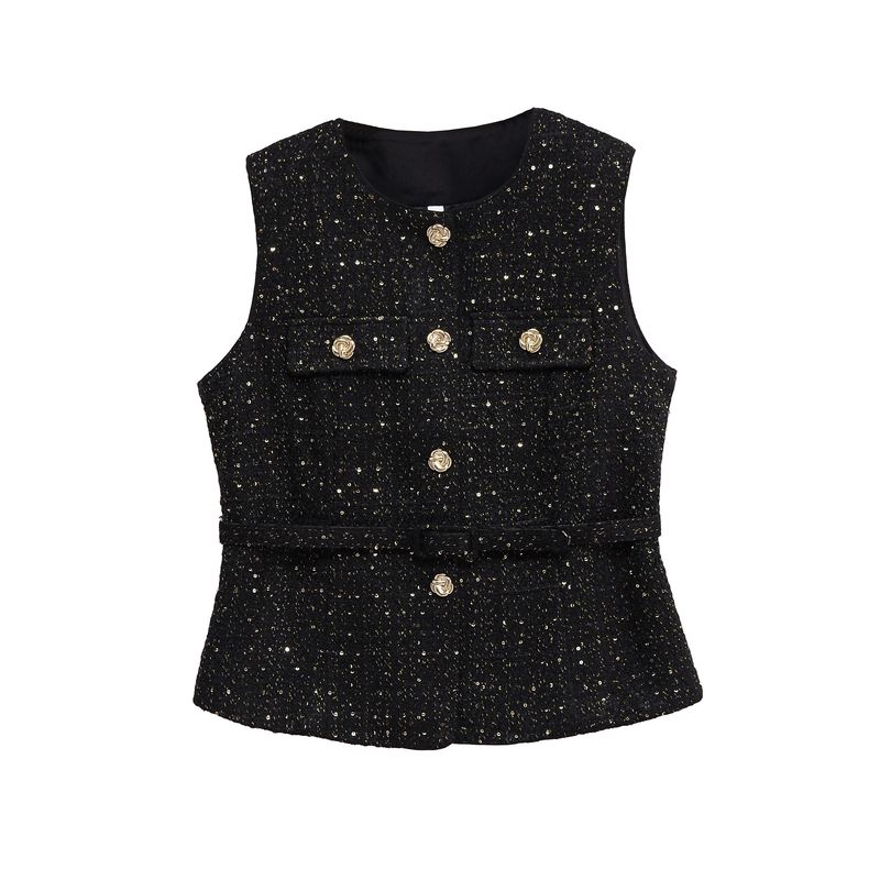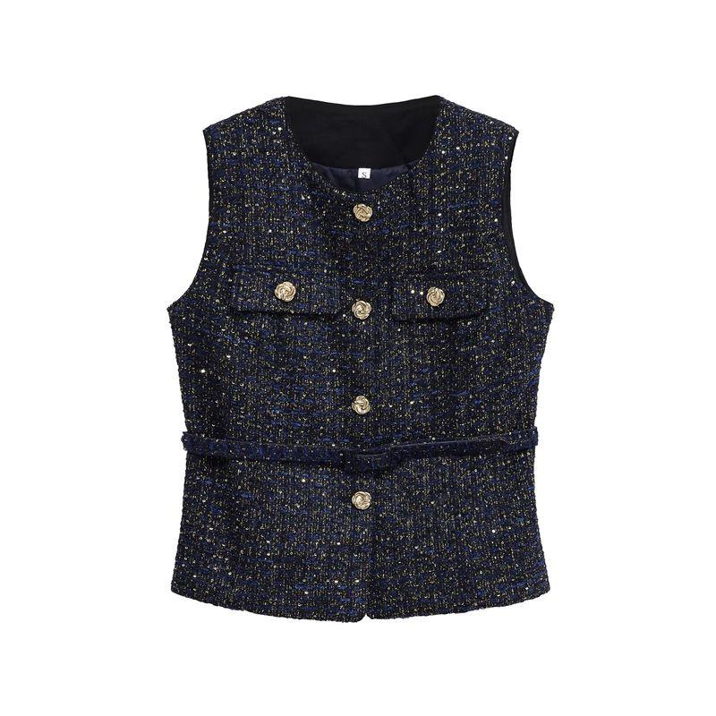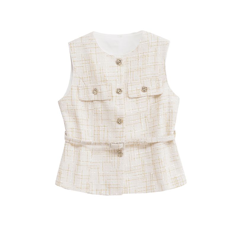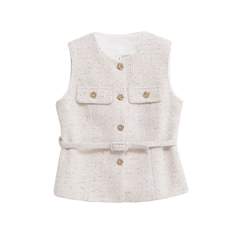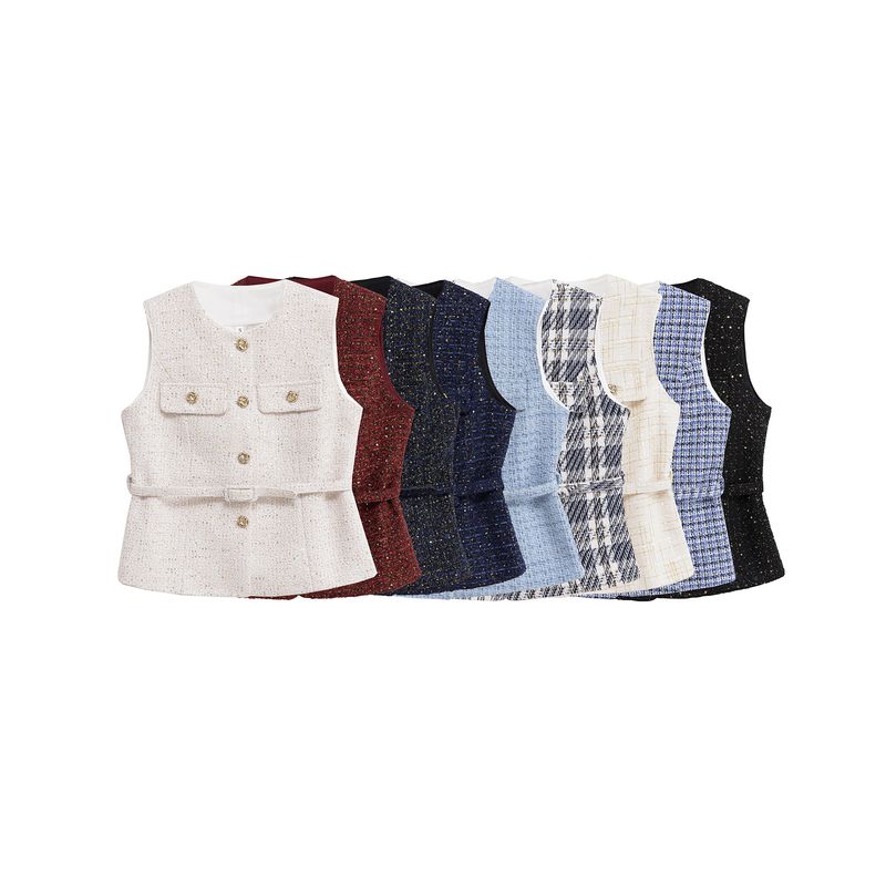 Kaslead New Women clothes Western Style Versitile Fashion Graceful Multicolor Belt Decoration Vest Vest