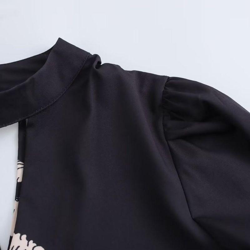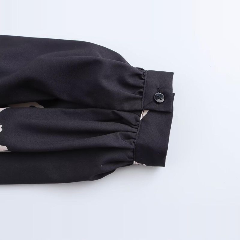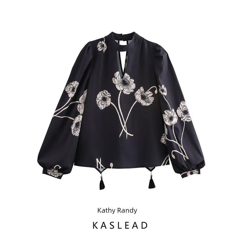 Kaslead New Arrival Women's Clothing Fashion Style Minimalist Easiest for Match Retro Print Half Turtleneck Bishop Sleeves Top