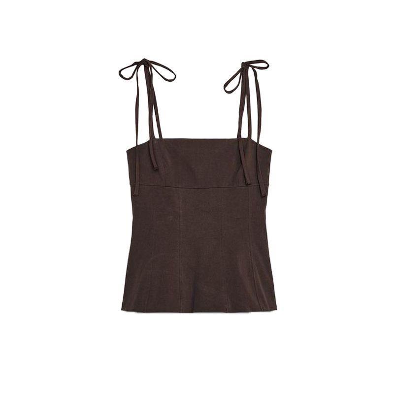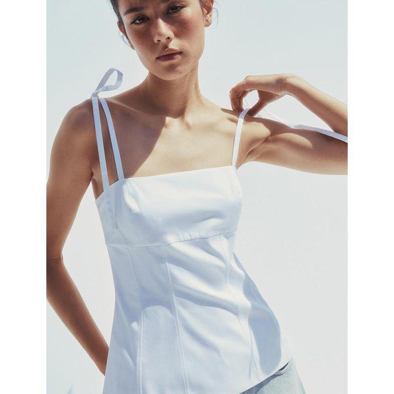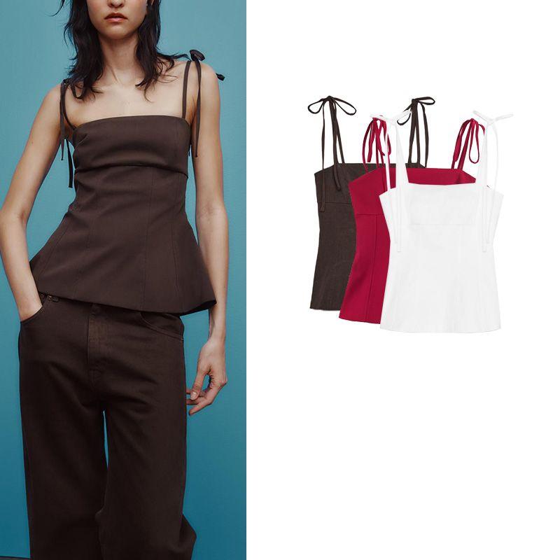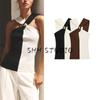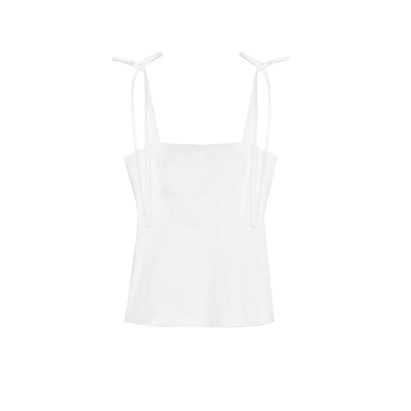Summer New Product Women's Clothes Minimalist Style Patchwork Lining Bowknot Decoration Straight Collar Silm Tops 3120422