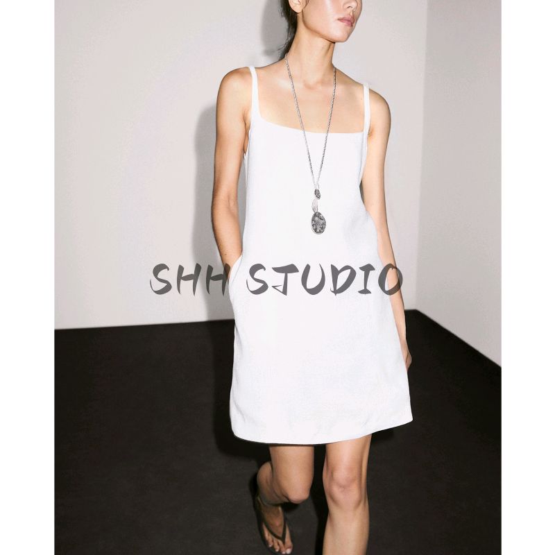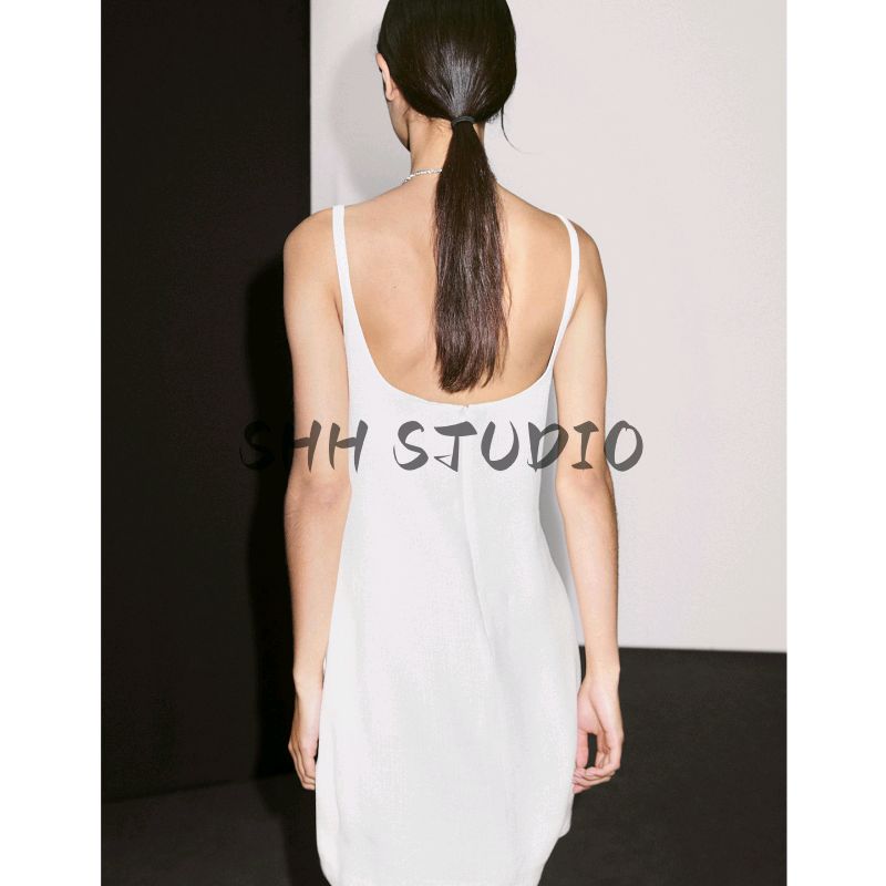 MD Летняя Новинка Женская Одежда Стиль Отпуска Кремово-белое Платье-слинг с квадратным вырезом и открытой спиной Платье-жилет 6620530