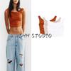 Spring and Summer New Women's Clothing Ins Style Minimalist Cotton Blend Double-Layer Design Boat Neck Short Sleeve Short Top 4174334