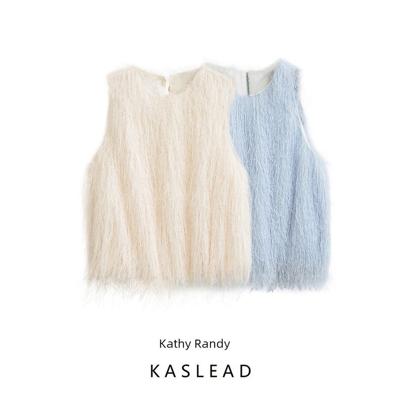 Kaslead New Women clothes Western Style Fashion Simple and Versatile Decorated Tassel Short Top 8741056