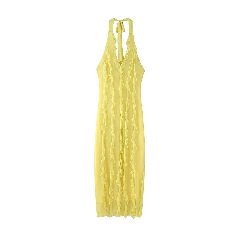 Kaslead Новая женская одежда Западный стиль Мода Простой Однотонный Сексуальный Вырез на шее Открытая спина Платье