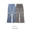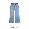 Kaslead Новинка Женская одежда Модный стиль Модный Универсальный Двубортный Широкие брюки с карманами Деним 1889022