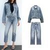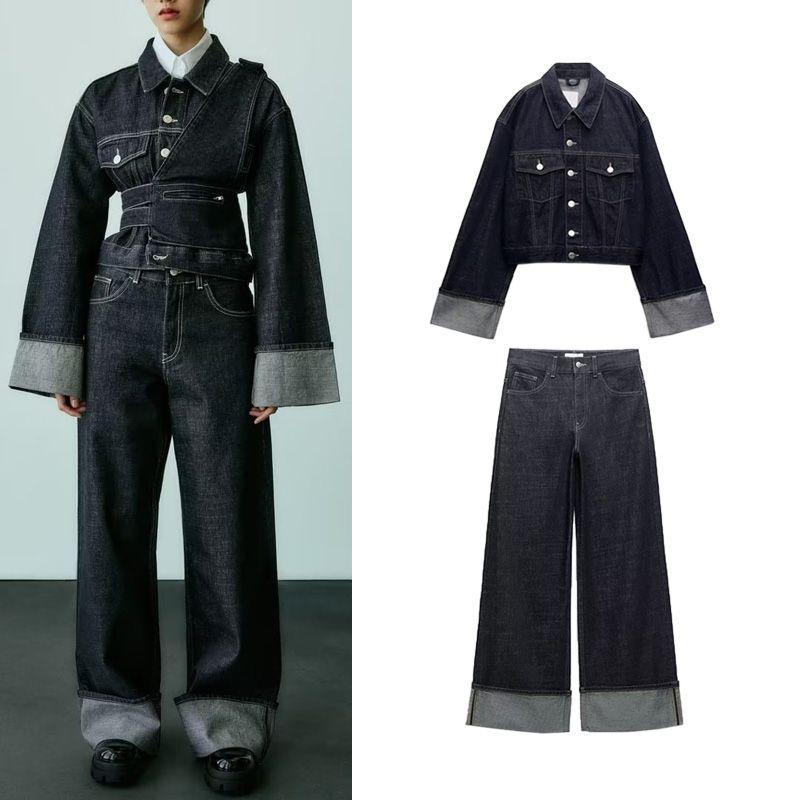 Осень и Зима Новое Поступление Зауженные Джинсы 6045205 Лацкан Длинные Рукава Джинсовая Куртка Пальто 6045206