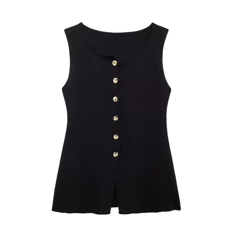 Spring New Arrival Knitting Sleeveless Tops Fashion Casual round Neck Golden Button Plain Stitch Vest 4192100