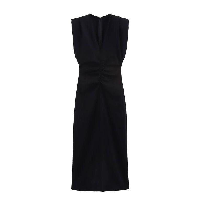 Kaslead New Arrival Women's Clothing Fashion Style Fashion Ruched Sleeveless Waist Midi Skirt Dress 2371650