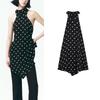 Summer New Women clothes French style Design Scarf Decoration Polka Dot Hanging Collar Straight Top 5289046