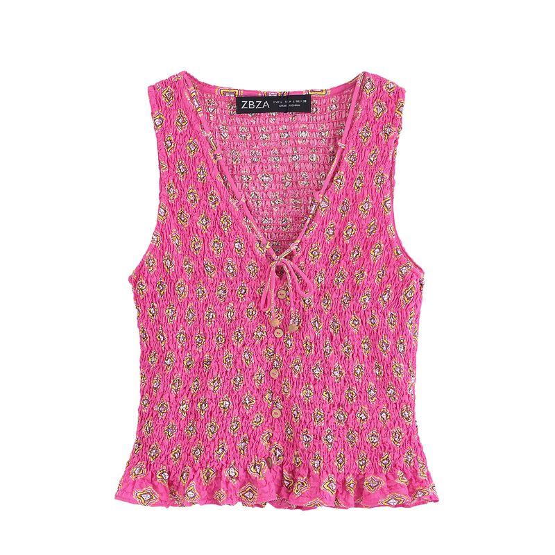 Kaslead Новая женская одежда Западный стиль Мода V-образный вырез Без рукавов Топ Юбка 8486505 8497505