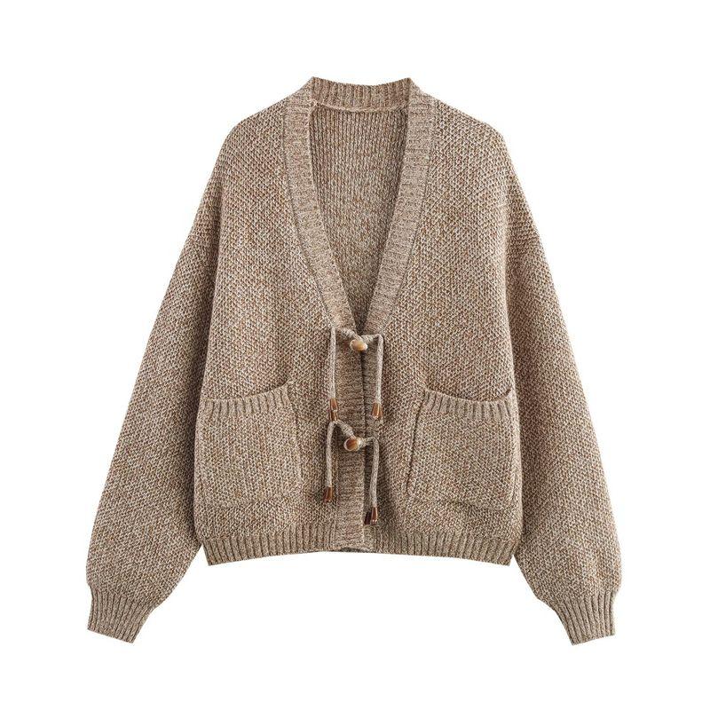 Kaslead Новая женская одежда Западный стиль Мода Арабесковая ткань Ручная работа Пряжка Вязаный кардиган Свитер Верхняя одежда