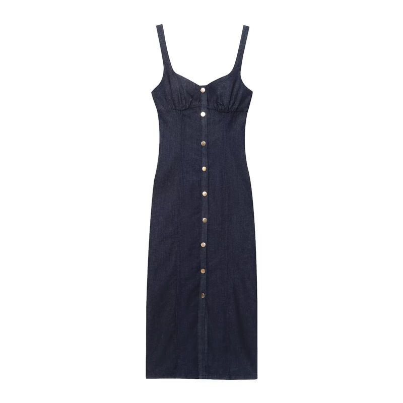Kaslead Новая женская одежда Западный стиль Приталенное Платье миди из денима на бретелях 0779055 400
