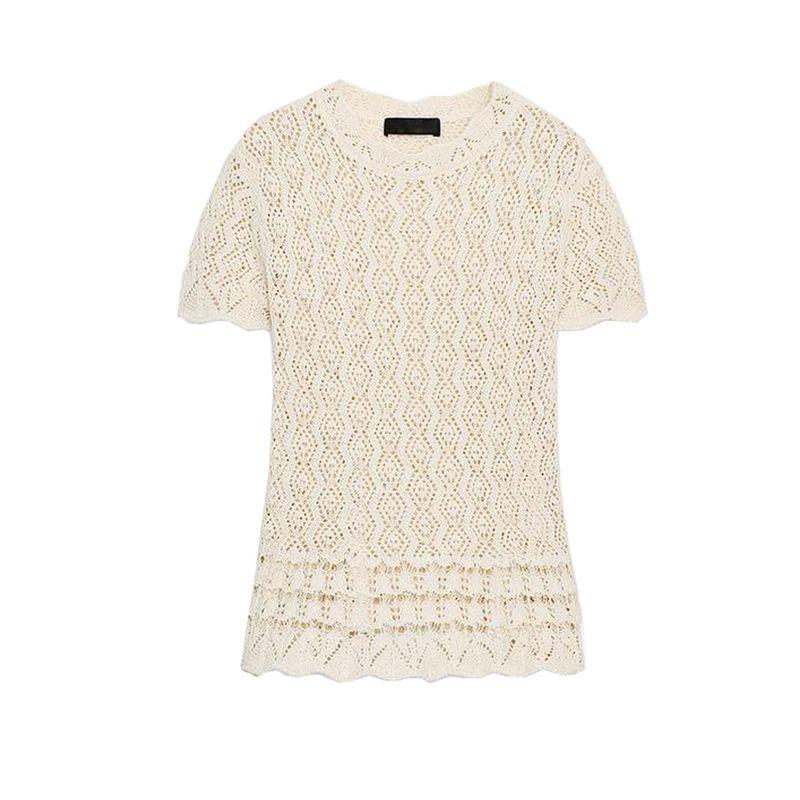 Autumn New Women's Clothing French Lazy Style round Neck Cut Out Mesh Knitted Short-Sleeved Shirt 6236104