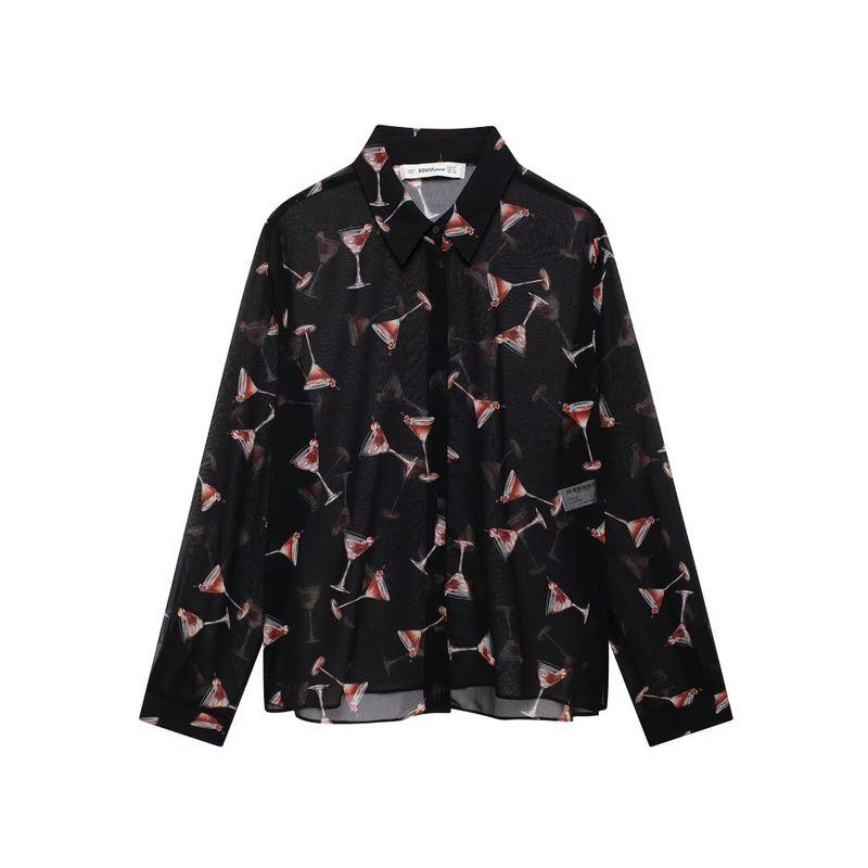 Kaslead New Arrival Women's Fashion Style Fashion All-Match Translucent Print Long Sleeves Shirt 9030213