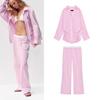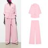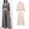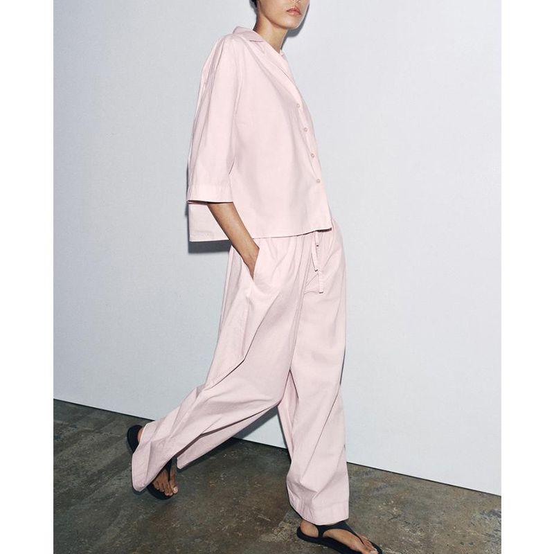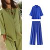 Хлопковая смесь Короткий рукав Лацкан Короткие рубашки 2183062 Средняя посадка Простые Широкие брюки кэжуал 2183063