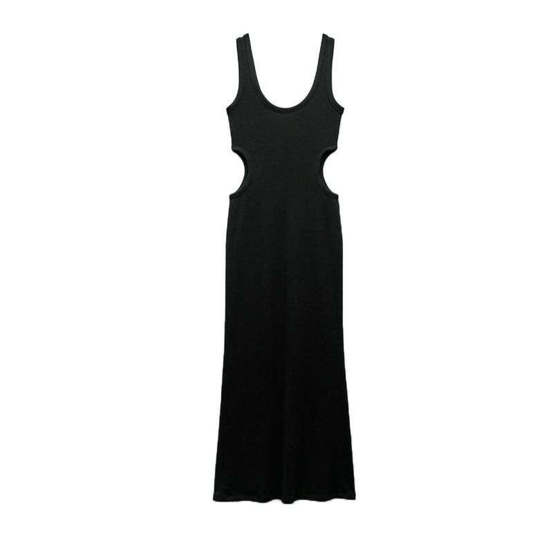 Spring New Elegant Sexy round Neck Wide Shoulder Strap Silm Hip Knitwear Hollow Dress 4174344