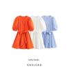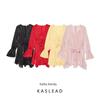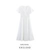 Kaslead New Women clothes Western Style Simple V-neck Bell Sleeve Waist Hugging Ribbon Dress