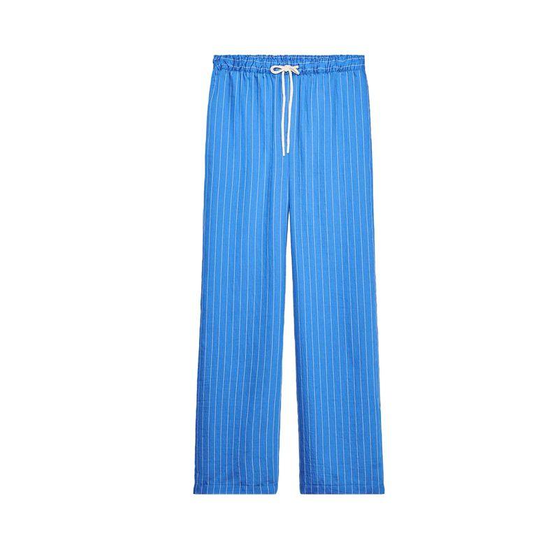 Лиоцелл Смешанная Полоска Лацкан Рукав Три четверти Рубашка 7563049 Полоска Средняя Посадка Прямые Брюки 7563050