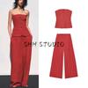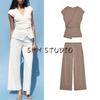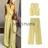 Дизайн с открытой спиной, жилет с V-образным вырезом 4749766, брюки плиссе с высокой талией и широкими штанинами для отдыха 1255435