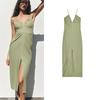 Summer New Product Women's Clothes Fashion Style Ruched Decorative Midi Heart-Shaped Collar Sling Dress 3152331