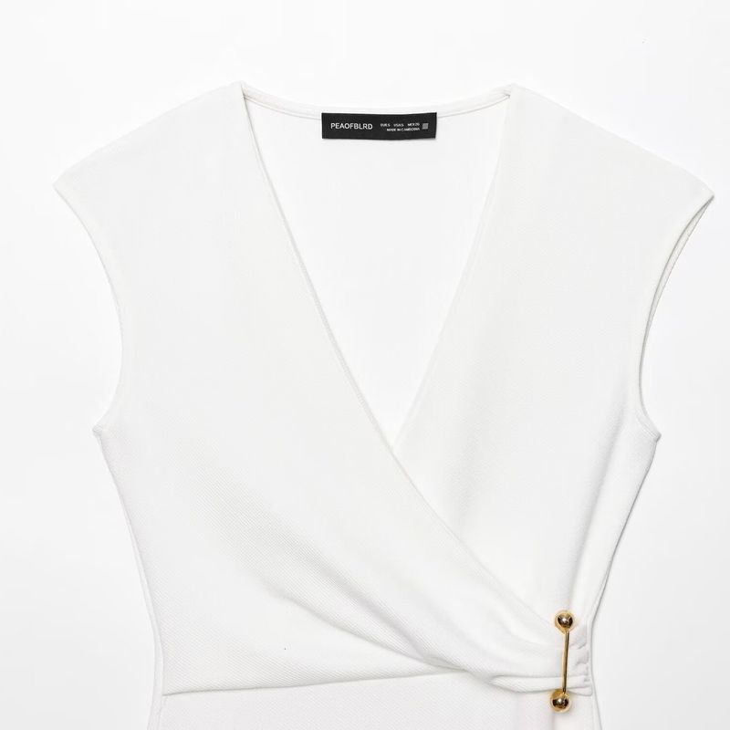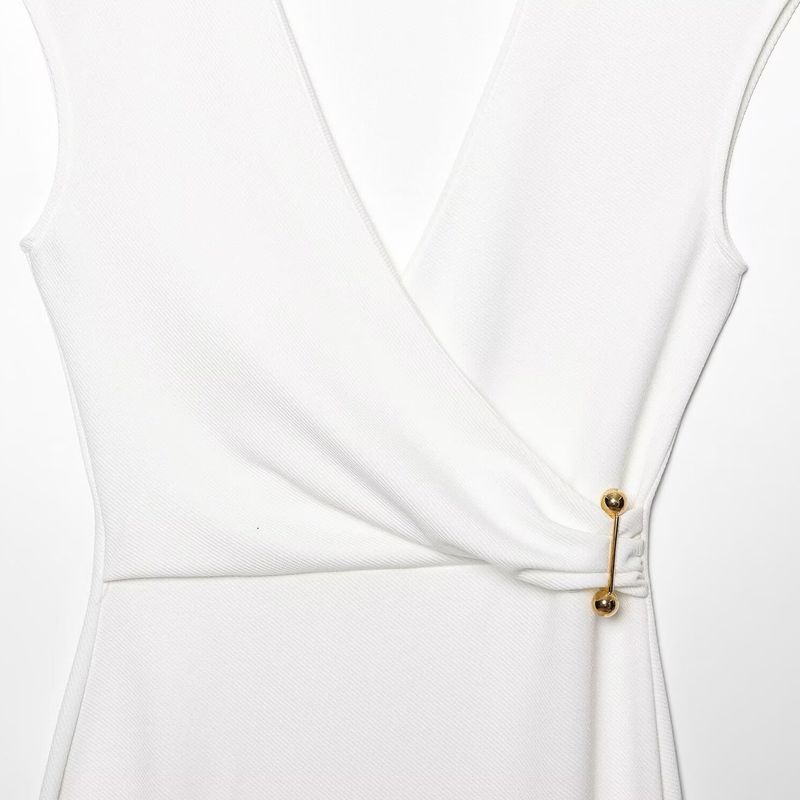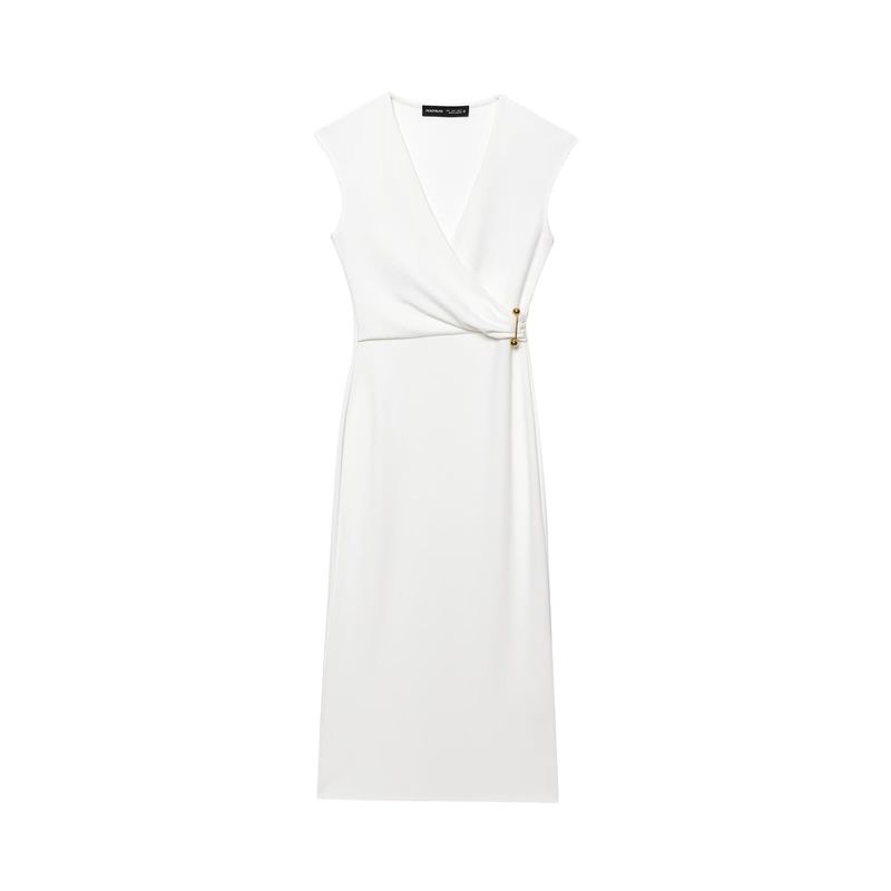Kaslead New Women clothes Western Style Pin Decoration V-neck Sleeveless Midi Dress 3644181 251