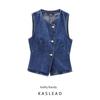 Kaslead New Women clothes Western Style Fashion Simple and Versatile Two Colors Denim Vest Vest