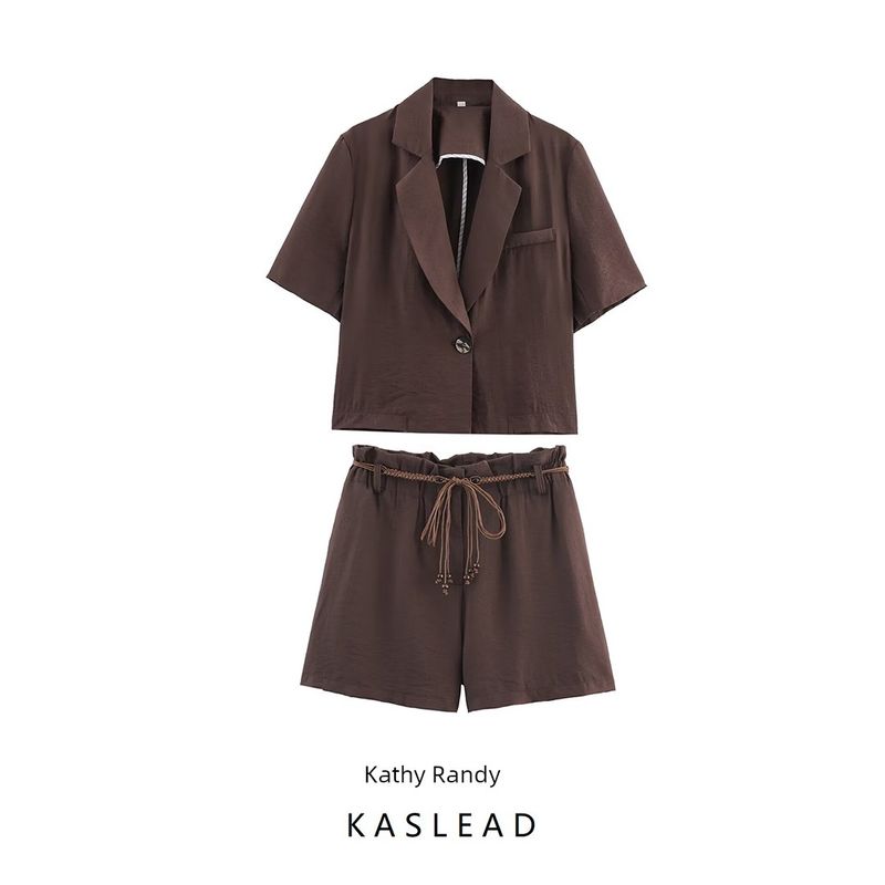 Kaslead New Arrival Women's Fashion Style Short Sleeve Suit Outwear Casual Pants 8073149 80736049