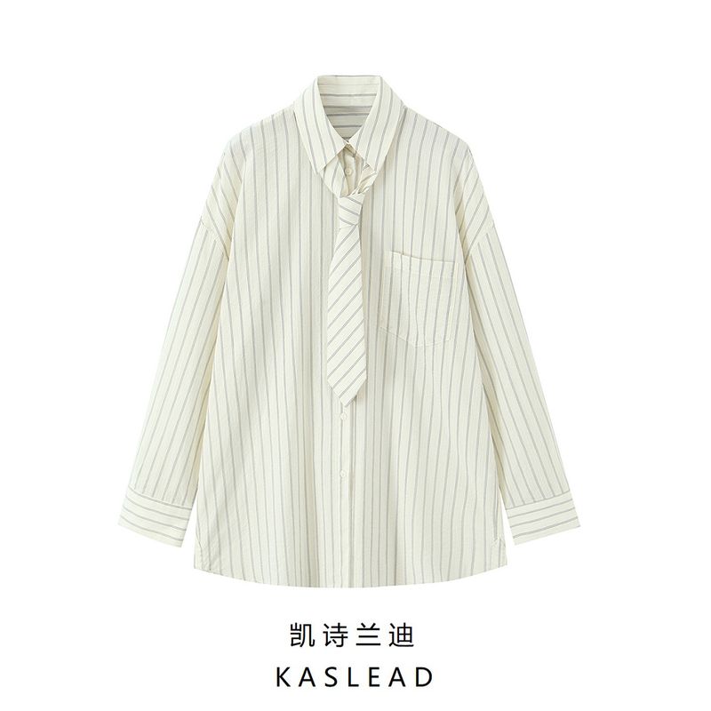 Kaslead New Women clothes Western Style Fashion Simple Tie Loose Shirts 4764113