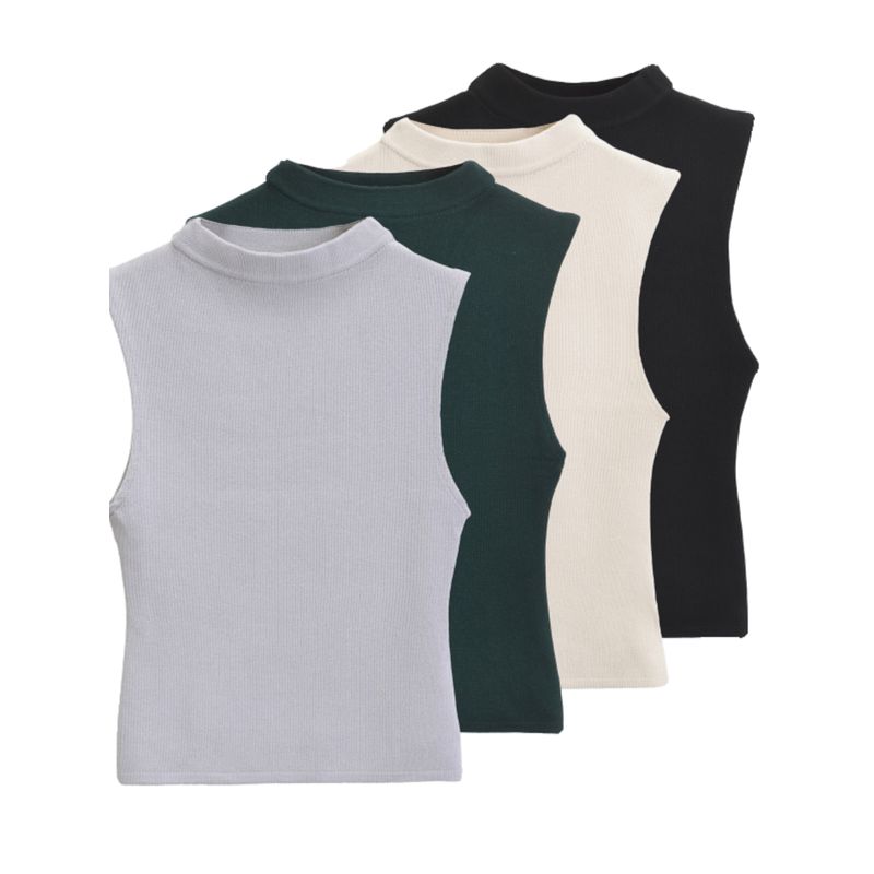 Kaslead New Arrival Women's Clothing Fashion Style Fashion All-Match Casual Half Turtleneck Sleeveless Tops 4174832
