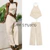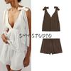 Cut Out Embroider Laminated Decoration Sleeveless Tops 3666099 High Waist A- line Casual Shorts 8073286